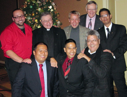 Members of the Casa María community attended the annual St. Mary’s alumni holiday reception at the Omni Hotel, Thurs., Dec. 3. Vice President for Mission and Identity Rev. Rudy Vela (front right) took time out to pose for this photo with the community. While the majority of the community attended this event, Brothers Bob and Tim staffed the junior retreat for Central Catholic. More photos.