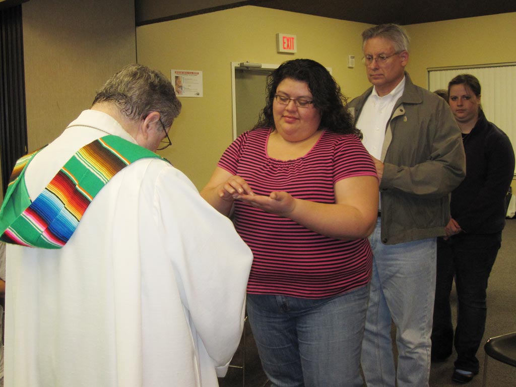 Braving the thunder, lighting and heavy rain, nearly 20 gathered in Flores Residence Hall lounge to celebrate evening Mass with the brothers of Casa María on Thurs., Jan. 14. Rev. Tim Dwyer, S.M., presided at the Eucharist.